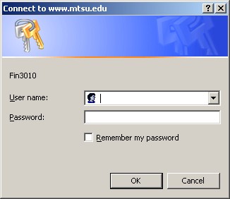 Access to pages beyond the top levels is restricted to MTSU students currently enrolled in a particular course. When you attempt to access online course materials, you will be challenged for your User Name and Password: